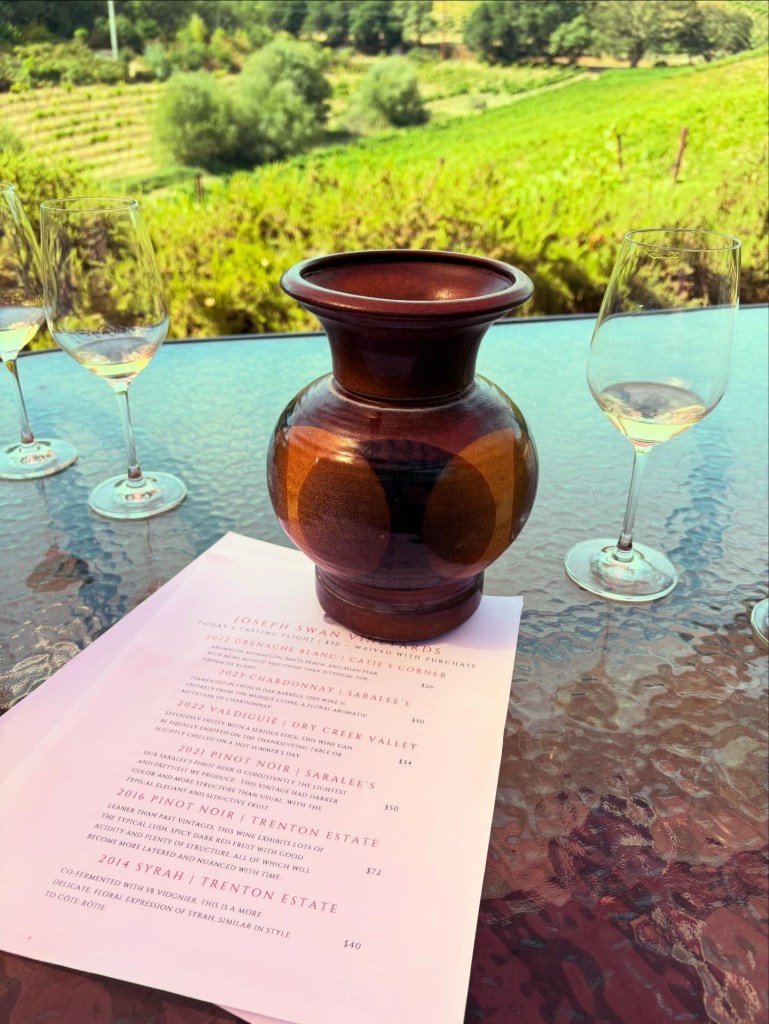After the eye watering prices we’ve seen on our trip so far, Joseph Swan prices are a welcome respite. In fact, they may be some of the best value Sonoma bottles I’ve encountered so far. We take the opportunity to stock up.